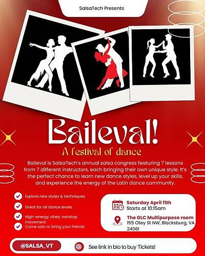 3-5:30 pm, beginning with a 45-minute West Coast Swing lesson tailored to the group’s experience level at Unitarian Universalist Congregation Adm $10 Open Practice times are meant to be a place for all levels of dancers to come together and, well, practice! whether you are a beginner or have more experience this is designed to help improve your dancing so we can grow together as a community. You can also just use this time to relax, dance and have fun! Elarth Hall at the UU church at 1301 Gladewood Drive, Blacksburg, VA 24060. (Item Posted Sunday, September 03, 2023 at 22:24) Back to MENU