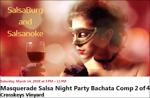 SALSA4LIFE Salsa dance party for ALL dance levels Beginner Salsa lessons begin at 8pm Open dancing 8:30-Midnight Salsa, Merengue, Bachata and Cha Cha Free raffle prize giveaways! $10 (Includes light refreshments, Salsa lesson, dance and prizes!)